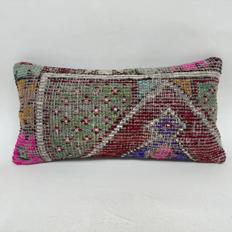Handmade Southwestern Throw Pillow, Purple & Green Rectangle Cushion