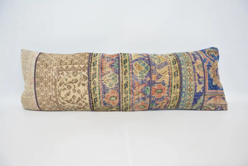 Handmade Southwestern Blue & Beige Throw Pillow, 16x48 Rectangle Cushion