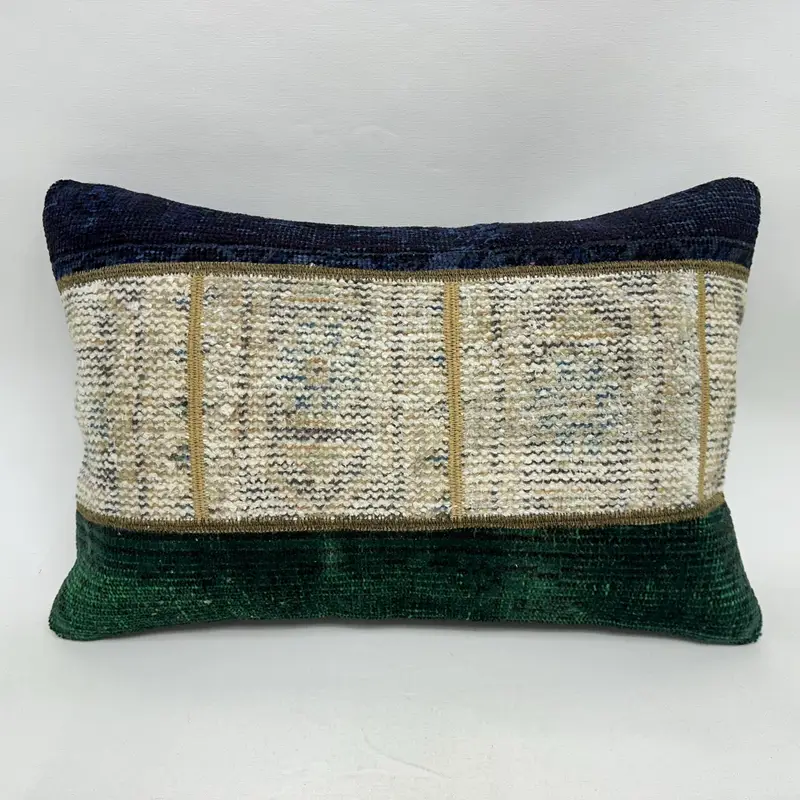 Blue & Green Patchwork Throw Pillow, Handmade Embroidered Pillow