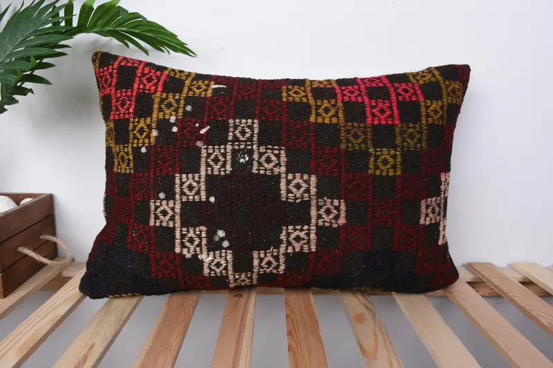 Brown & Red Geometric Linen Throw Pillow, Handmade Vintage Decor