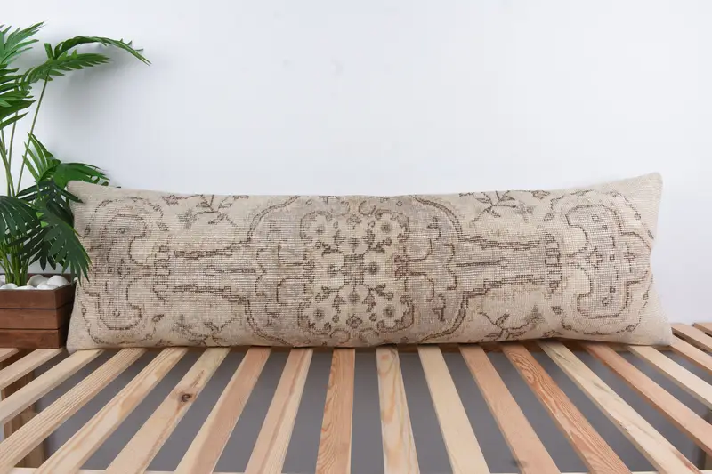 Handmade Beige & Brown Floral Throw Pillow, Vintage Rectangle Pillow