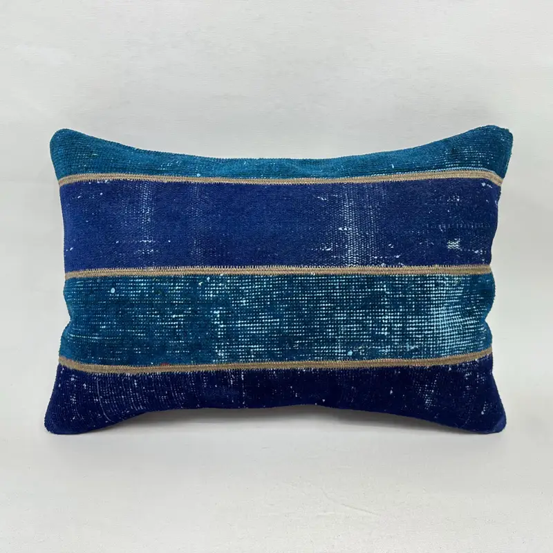 Blue & Bronze Patchwork Throw Pillow, 16x24 Handmade Cushion