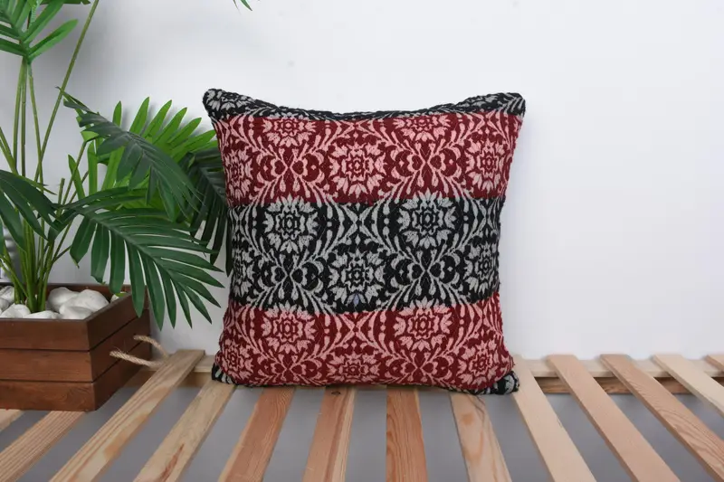 Red Embroidered Throw Pillow, 18x18 Handmade Geometric Linen Pillow