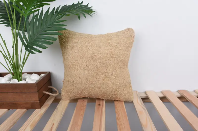 Beige Southwestern Kilim Throw Pillow, Handmade Embroidered Cushion