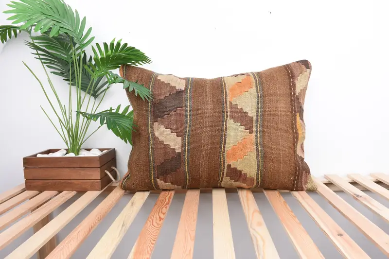 Brown Southwestern Embroidered Pillow, Handmade Linen Throw Pillow