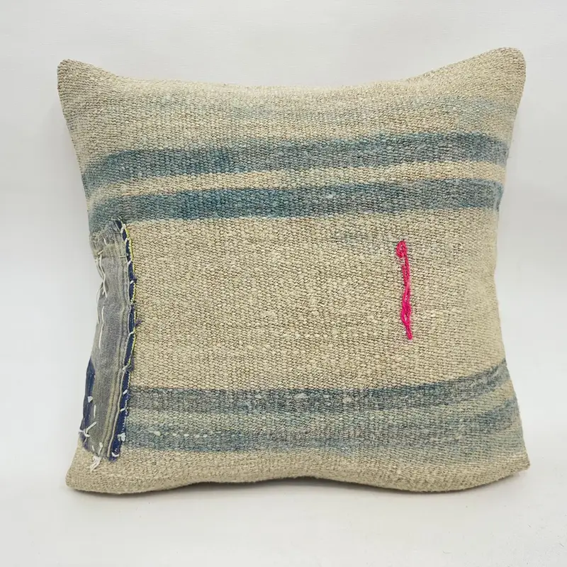 Beige & Brown Striped Throw Pillow, Vintage Embroidered Cushion