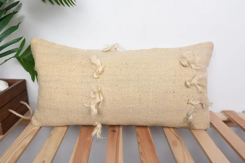 Beige Southwestern Embroidered Pillow, 12x24 Handmade Throw Pillow
