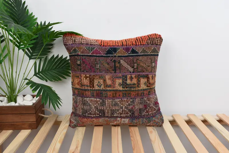 Orange & Gray Patchwork Throw Pillow, 20x20 Embroidered Vintage Pillow
