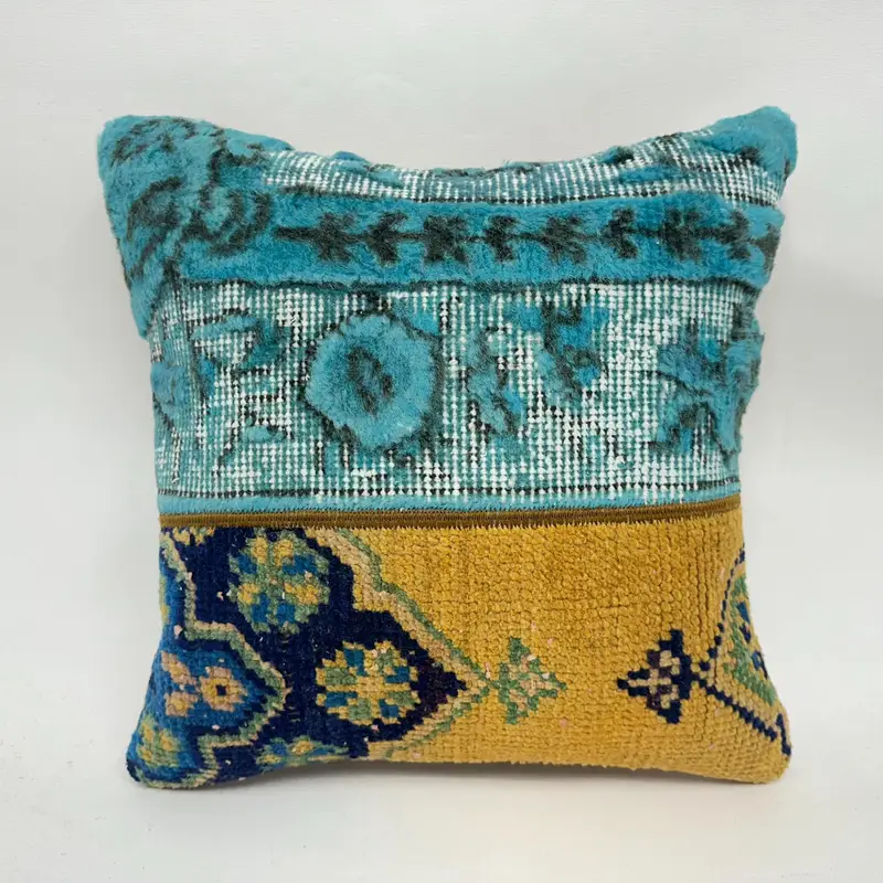 Handmade Embroidered Patchwork Throw Pillow, Vintage Brown & Green Cushion