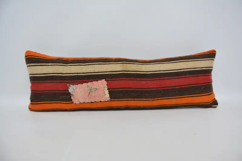 Red & Orange Striped Throw Pillow, 12x36 Handmade Hemp Cushion