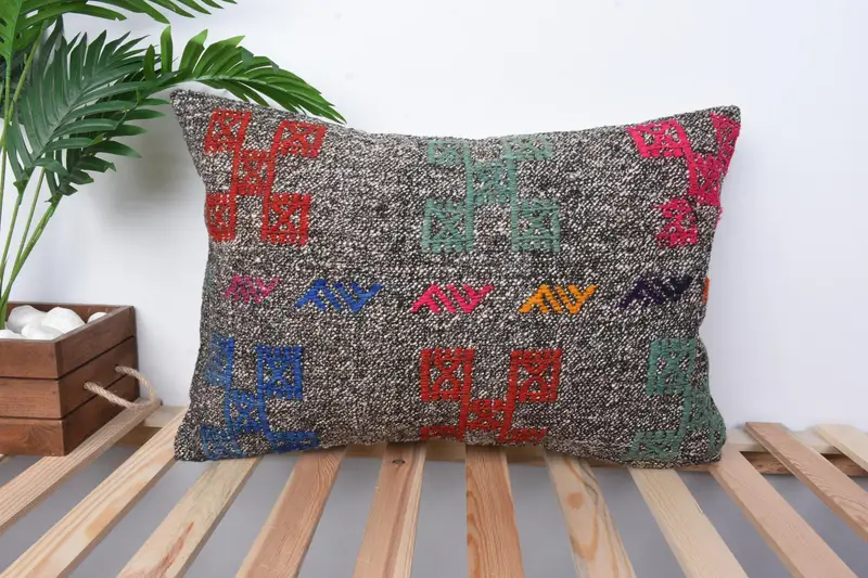 Embroidered Southwestern Pillow, 16x24 Handmade Throw Pillow