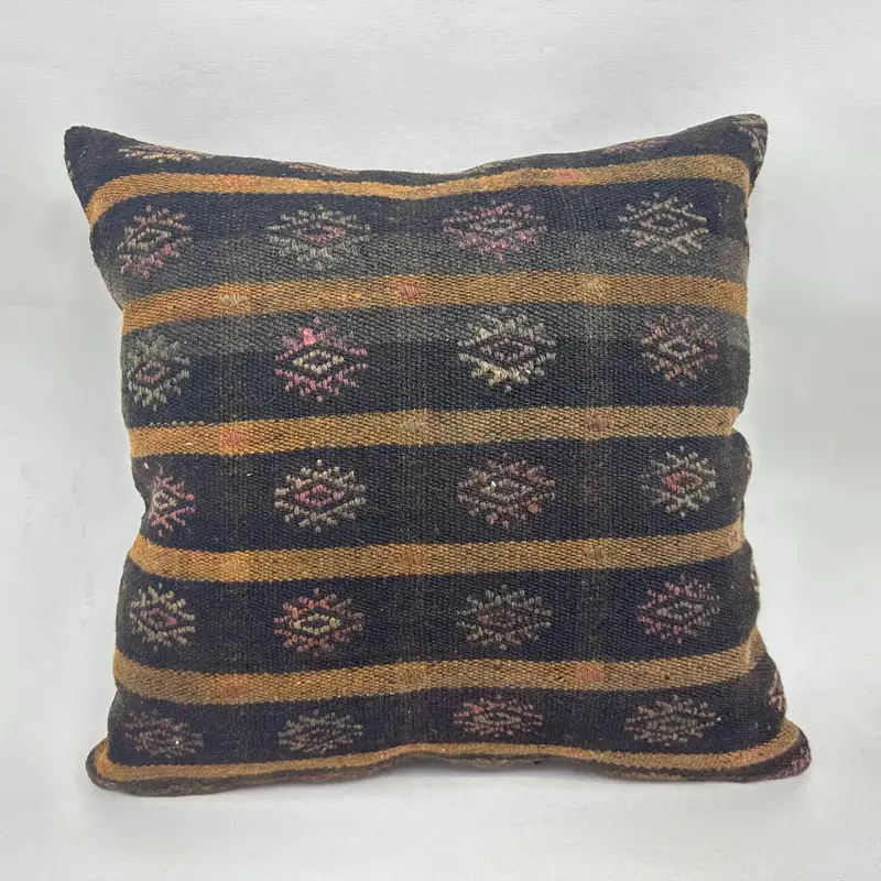 Embroidered, Black & Yellow Striped Pillow, 20x20 Throw Pillow
