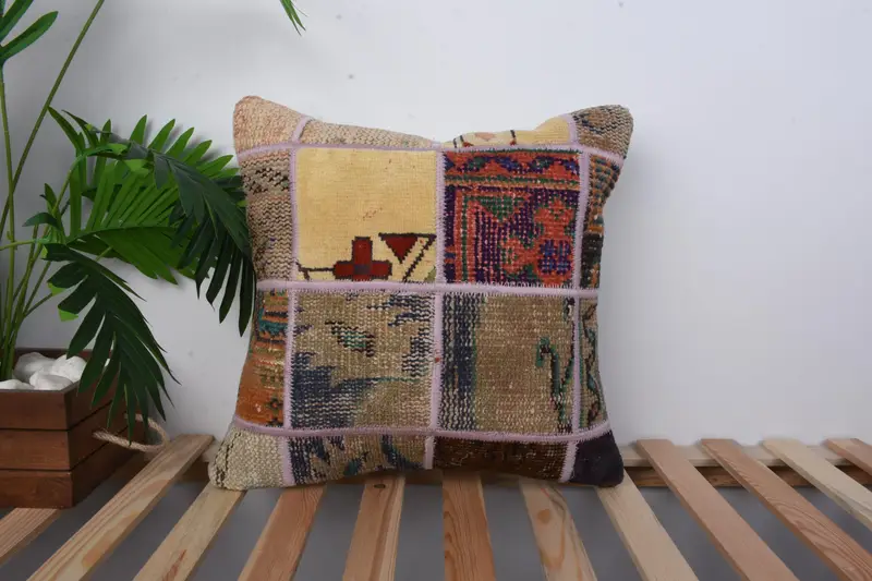 Brown & Orange Embroidered Throw Pillow, Southwestern Handmade Cushion
