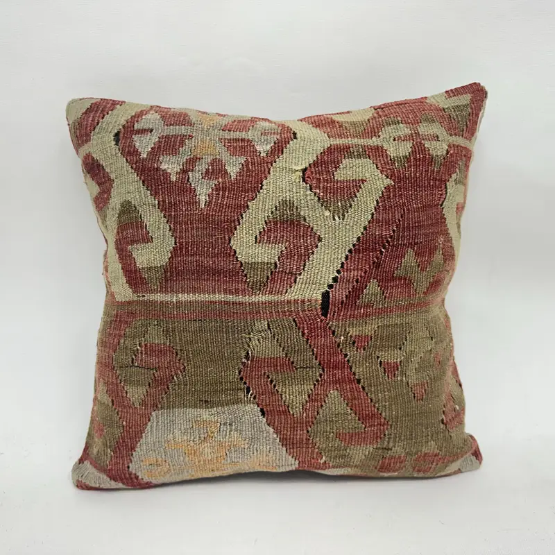 Embroidered Purple & Gray Geometric Throw Pillow, Handmade Linen Cushion