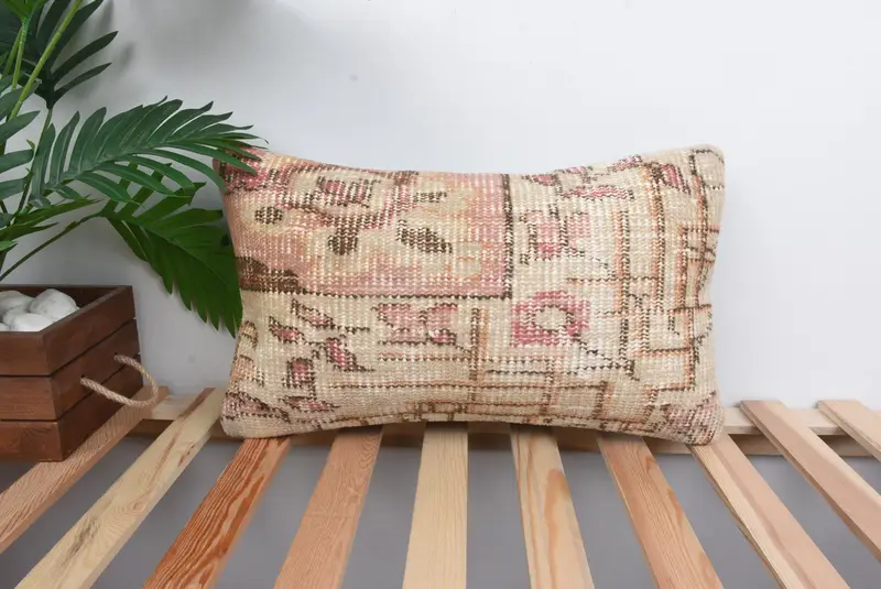 Beige Southwestern Embroidered Pillow, Handmade Vintage Throw Pillow
