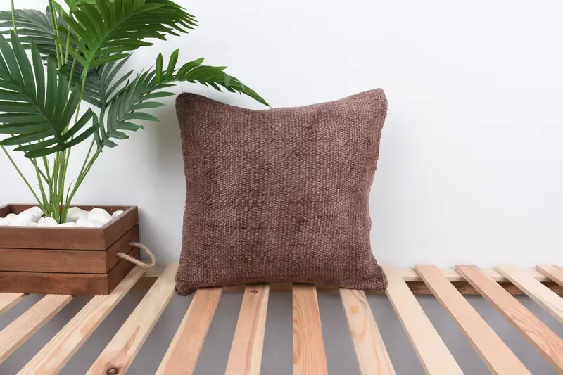 Brown Southwestern Embroidered Pillow, Vintage Handmade Throw Pillow