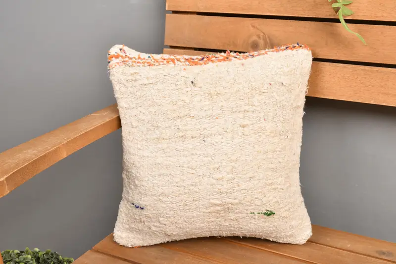 Beige Southwestern Embroidered Throw Pillow, Vintage Handmade Cushion