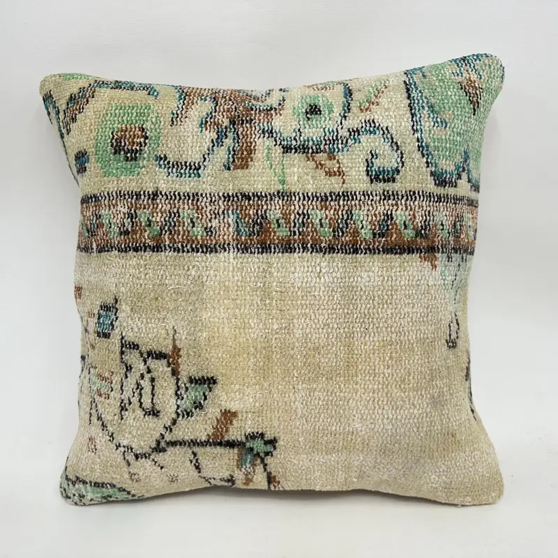 Handmade Green & Brown Floral Throw Pillow, 20x20 Vintage Linen Pillow