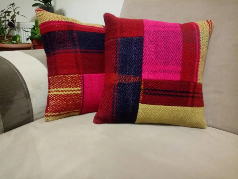 Embroidered Patchwork Throw Pillow, Vintage Wool Cushion