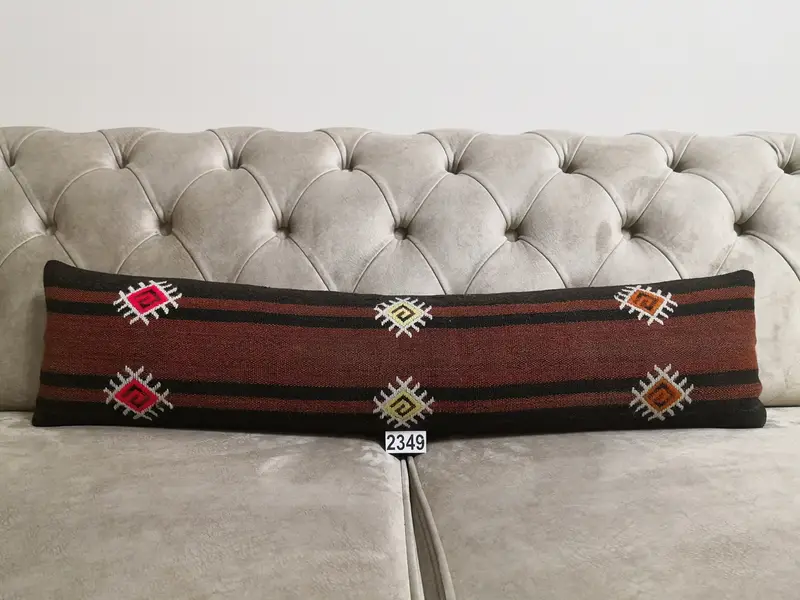Handmade Striped Wool Throw Pillow, Vintage Rectangular Pillow