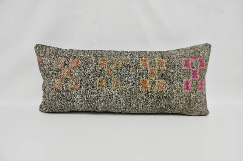 Handmade Gray & Beige Throw Pillow, Versatile Rectangle Pillow