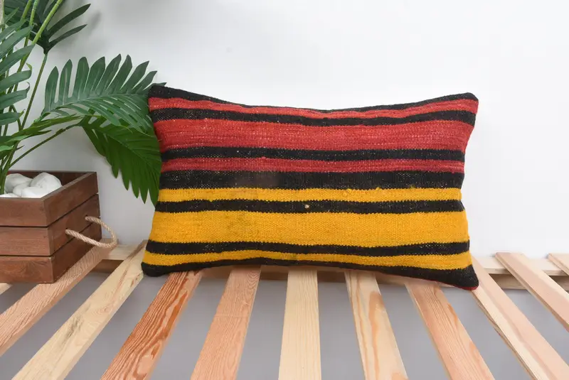 Brown & Red Striped Pillow, 12x20 Embroidered Throw Pillow