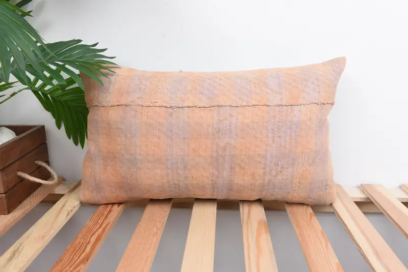 Orange & Bronze Striped Pillow, Handmade Rectangular Throw Pillow