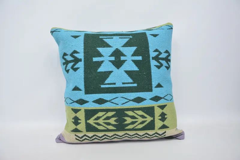 Handmade Blue & Green Throw Pillow, 24x24 Embroidered Cushion