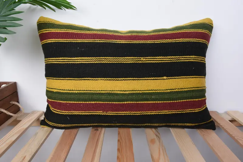 Brown & Yellow Embroidered Throw Pillow, Handmade Striped Pillow