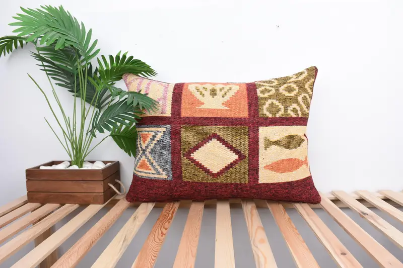 Orange & Green Embroidered Pillow, 20x28 Handmade Throw Pillow