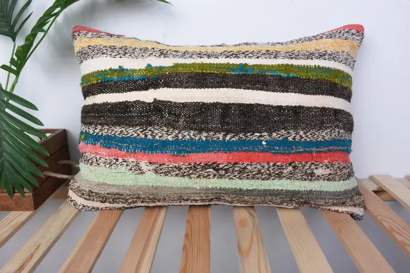 Handmade Striped Throw Pillow, Versatile 16x24 Inch Pillow