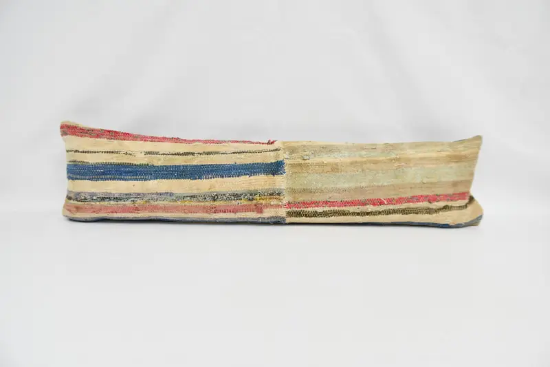 Beige & Red Striped Cushion, Handmade Rectangle Throw Pillow