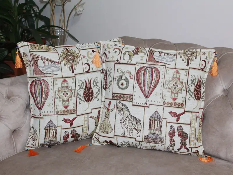 Handmade Embroidered Throw Pillow, Vintage Floral Cotton Pillow