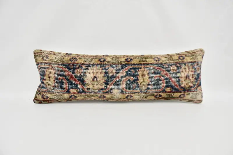 Blue & Orange 12x36 Rectangle Throw Pillow, Vintage Handmade Cushion
