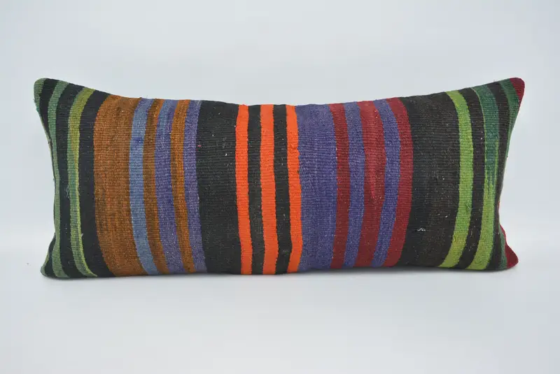 Green & Orange Striped Throw Pillow, Versatile Hemp & Wool Pillow