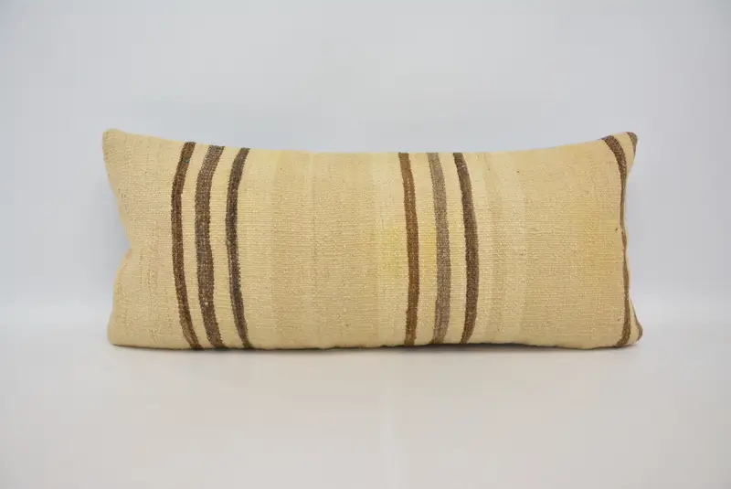 Beige Striped Throw Pillow, 16x36 Handmade Cushion