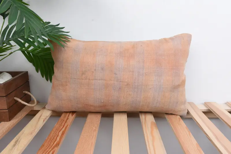 Orange & Purple Striped Throw Pillow, 12x20 Handmade Linen Pillow