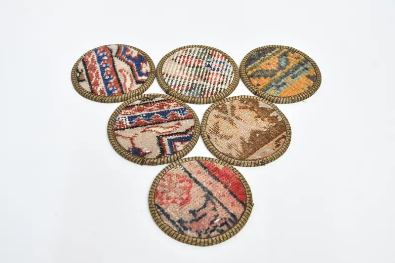 Red and Bronze Kilim Coasters, Elegant and Durable Table Coasters