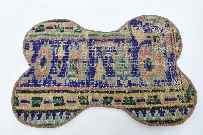 Medium Blue & Beige Cotton Pet Mat with Foam Filling, Pet Pads