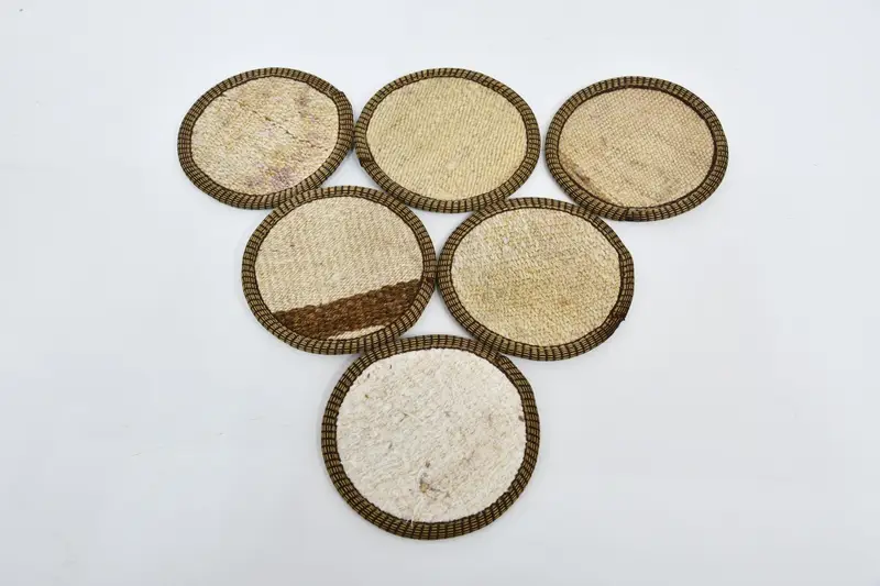 Beige and White Striped Coasters, Set of Six Unique Coffee Coasters
