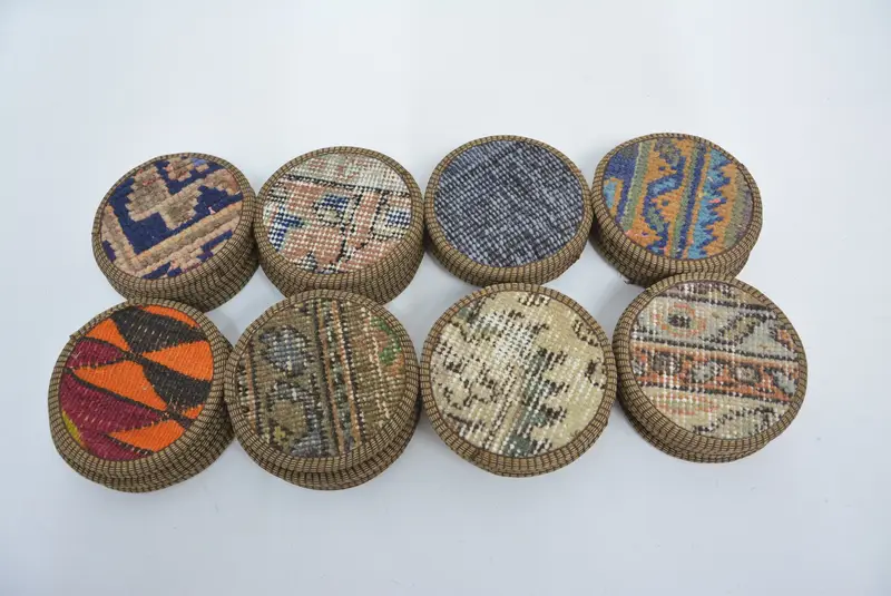 Unique Kilim Pattern Coaster, Round Non-Slip Coffee Cup Pad