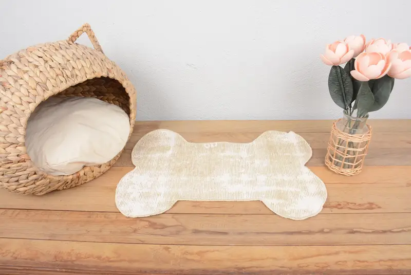 Medium Blue & Beige Cotton Pet Mat with Foam Filling, Durable Pet Pad