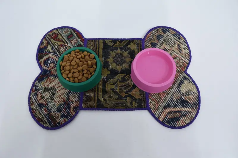 Comfortable Blue & Red Cotton Pet Mat with Foam Filling, Medium Pad