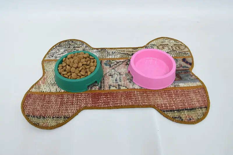 Medium Orange & Beige Cotton Pet Mat with Foam Filling, Durable Pet Pad