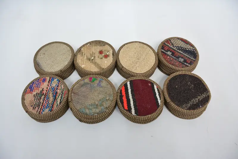 Non-Slip Leather Fabric Coaster, Unique Kilim Coaster