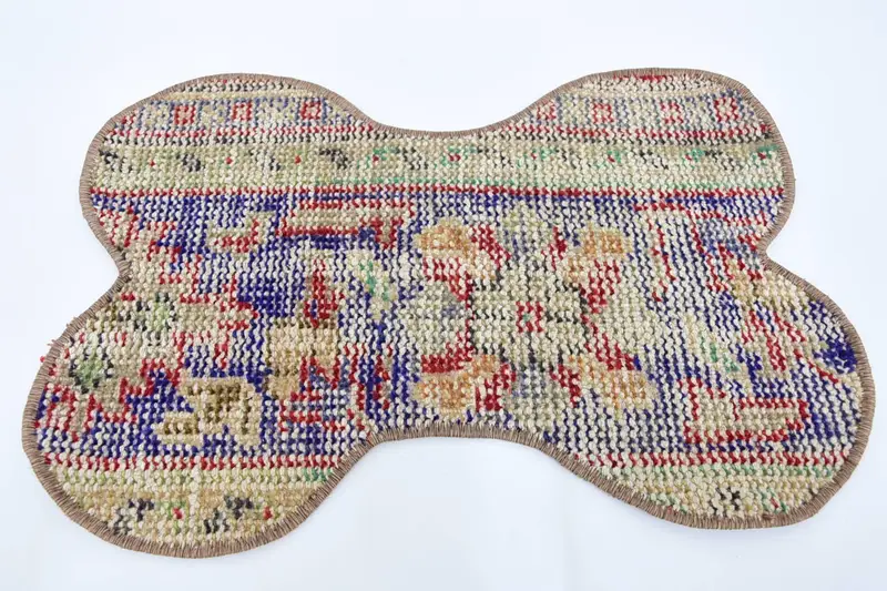 Comfortable Blue & Beige Cotton Pet Mat, Medium Foam-Filled Pet Pad