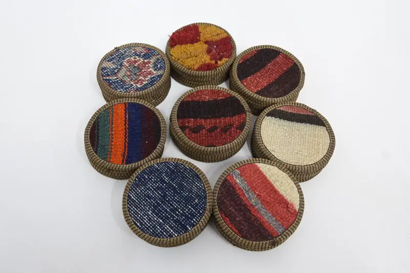 Tribal Kilim Pattern, 5x5 Inches Turkish Rug Coaster