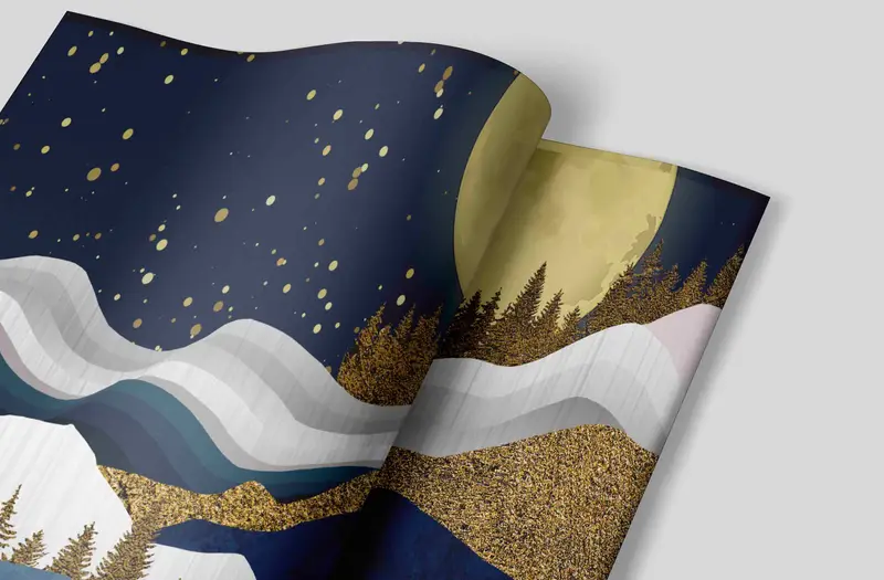 Golden Starry Night Canvas: Abstract Mountain & Moon Landscape
