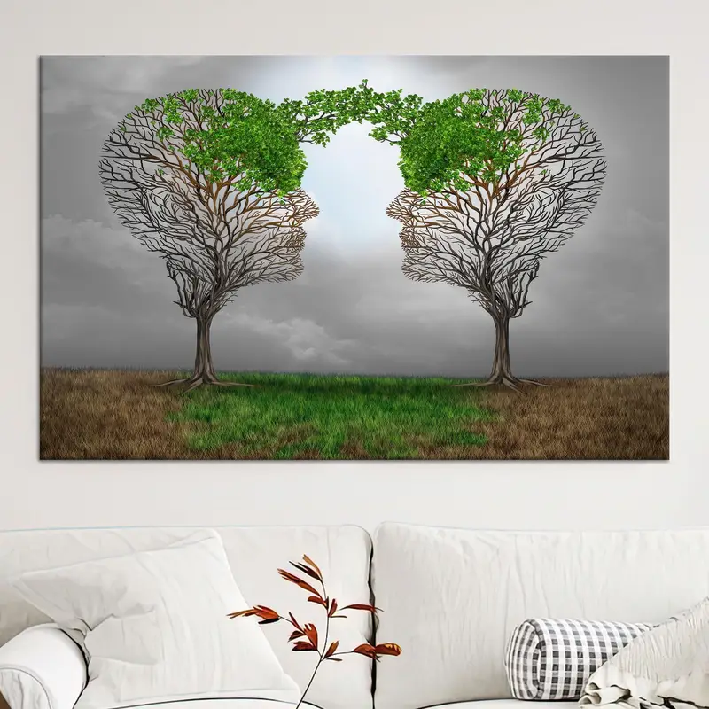 Hopeful Spring Canvas: Abstract Tree Couple Therapy Art Print