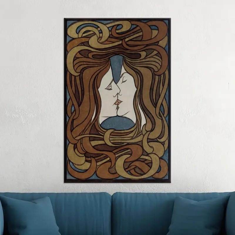 Romantic Couple Canvas: Abstract Surreal Love Art Print